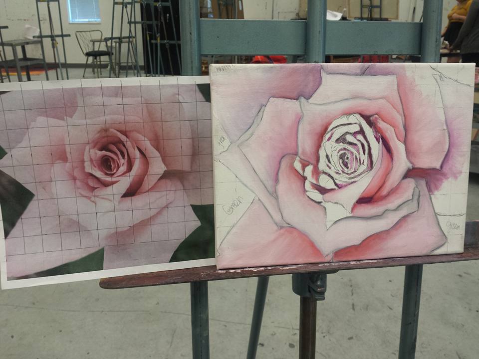 Yeah well that’s my version at least . The version that played through head for at least 20+ hours on autoplay and repeat. I can honestly say I didn’t go crazy But rather fully embraced the song as part of the learning process of my project for advanced painting class. I decided to paint something small for my first series because normally when I paint I tended to paint the ocean and the sky – two INFINITE beings. Yes I called them beings – I’m not sure they can just be called things. So by painting something as small as a rose I’m forcing myself to paint something I see that is the complete opposite from my painting comfort zone.